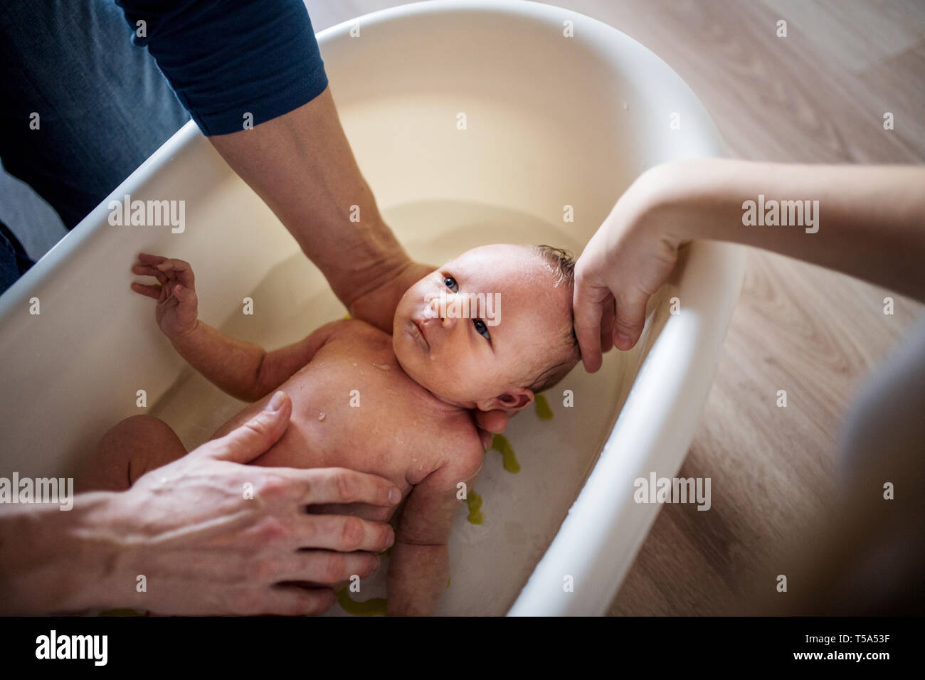 How To Bathe A Newborn Baby At Home : Little Newborn Baby 14 Days Old Having His First Bath At Home Stock Photo Alamy : There are many different techniques for bathing baby and making bath time enjoyable and effective for both your baby and you.. Home baby newborn daily care and routine. While bathing her little angel. Make sure the water isn't too hot. You've gone through the pregnancy, the labour, the first car ride home (at 30km an hour the whole way). How to bathe a newborn at home | newborn bathing tipsnewborn first baby bath and massage the most beautiful experience for both parents.